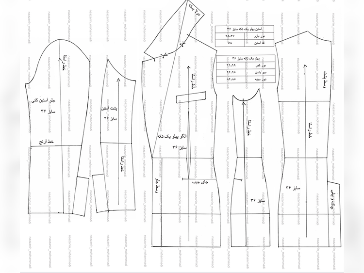 پک کامل الگوهای سایزبندی ۳ مدل بالاتنه و شلوار( ۳۶ تا ۵۲)